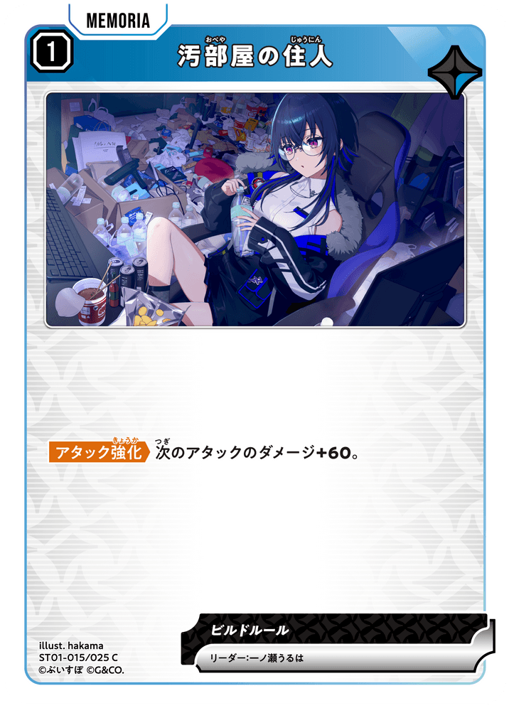『とと』と入れ替え候補。100族ではあるが、覚醒時に他リーダと比較し強力な効果を発揮し、さらに専用カード『汚部屋の住人』と『うるパーンチッ!』をデッキに組み込める点が大きな強みとなります。